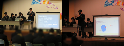 委員会、部活動の取り組みをしていくのかということを各委員会、各部の代表の生徒が説明しました。